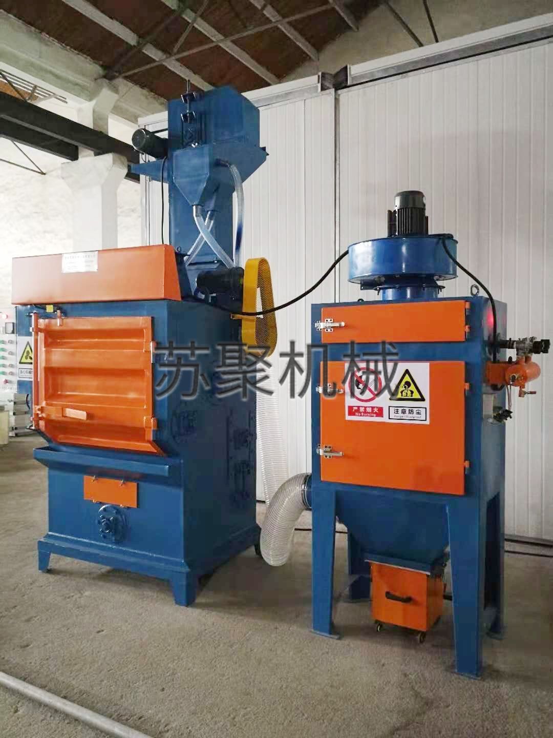 本機由清理室、履帶傳動、彈丸循環(huán)系統(tǒng)、拋丸器、分離器、上料系統(tǒng)及門架系統(tǒng)、除塵器、電器等部分組成。